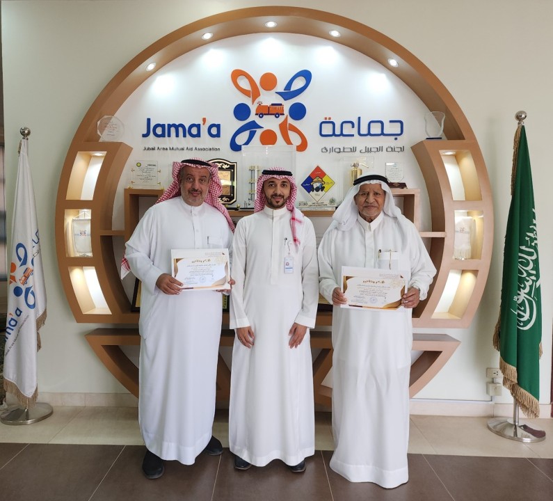 The Industrial Security and Safety Department at the Royal Commission for Jubail presented certificates of thanks and appreciation to Mr. Nasser bin Kamhan Al-Subaie, Mr. Abdullah bin Omar Al-Ghamdi, Assistant Coordinator of the Jubail Emergency Committee (JEC) and a number of committee members. Jubail Commercial Port iron company. Kemia, Inc. ArcelorMittal. Jasco, Inc. Utilities Company) For their participation in controlling and extinguishing the fire that occurred in the health landfill area in Jubail, which broke out on Friday, Shawwal 8, 1444 AH corresponding to April 28, 2023 AD.
